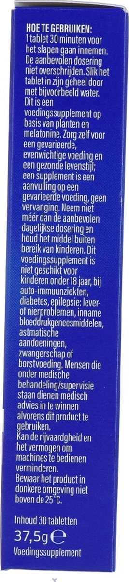 1 tablet 30 minuten voor het slapen gaan innemen. Slik het tablet in zijn geheel door met bijvoorbeeld water.
